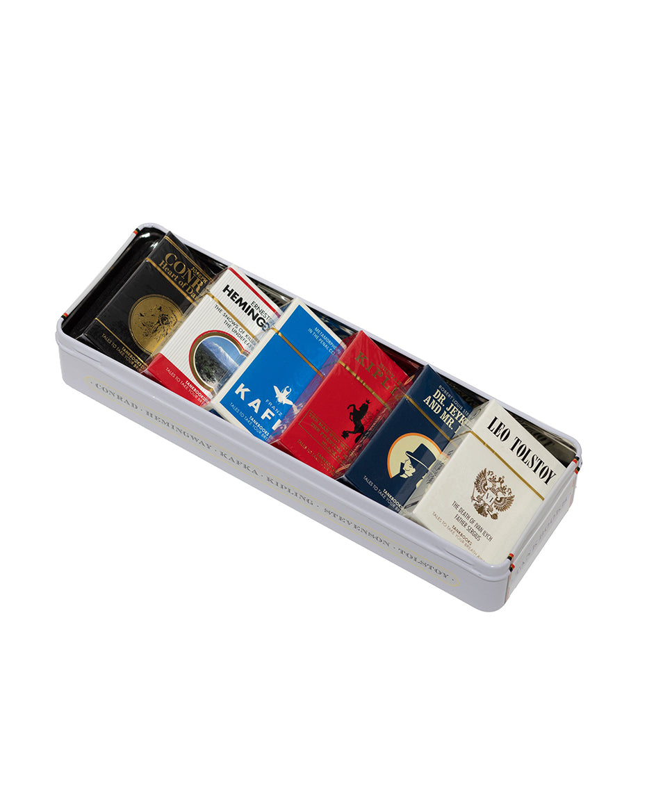 TankBooks pay homage to the iconic form of flip-top packaging by employing it in the service of great literature. We have launched a series of books designed to mimic cigarette packs – the same size, packaged in flip-top cartons with silver foil wrapping and sealed in cellophane.