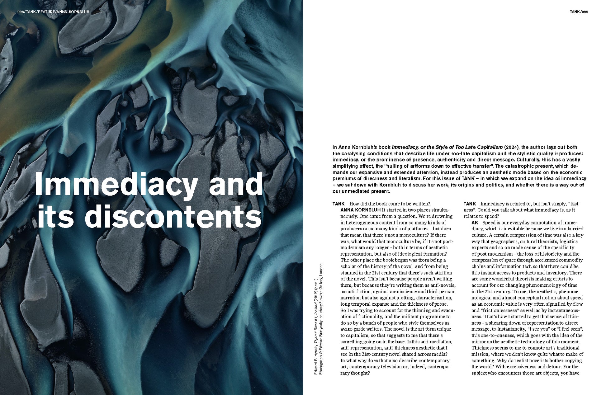 SOLD OUT: Anna Kornbluh’s book Immediacy; or the Style of Too Late Capitalism (Verso, 2024) is a dazzlingly incisive diagnosis of our dominant aesthetic mode of urgency, flow, frictionlessness, thinness and instantaneity. Describing the “hulling of artforms down to effective transfer” and closely intertwined with the dynamics of 21st-century capitalist production and circulation, immediacy’s influence is visible in Marvel movies and mental health apps, autofiction and Amazon Prime. In this issue we take immediacy as our theme, considering what is lost in our always-on, “it is what it is” paradigm.